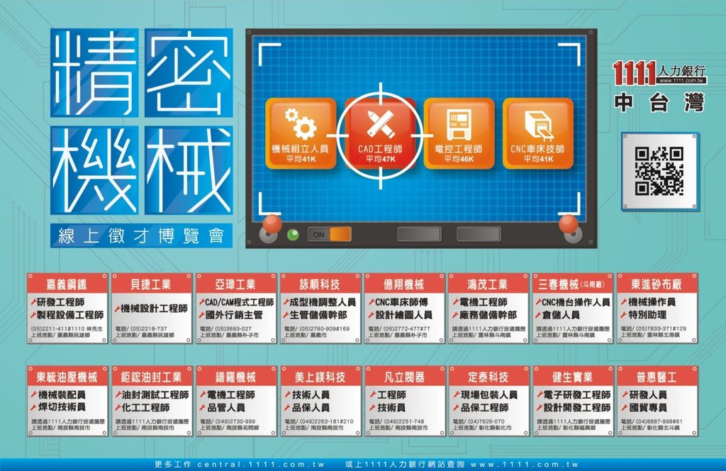 1111人力銀行中台灣:精密機械線上徵才博覽會