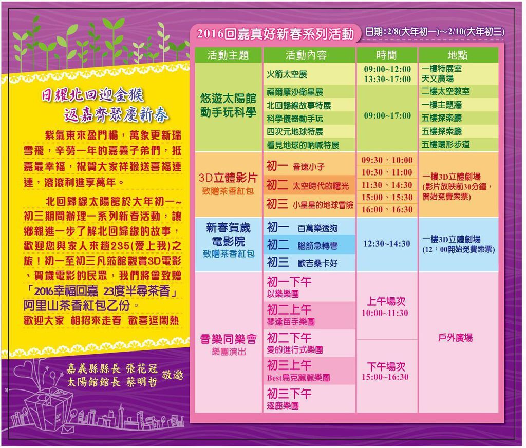 2016回嘉真好新春系列活動,2/8-2/10