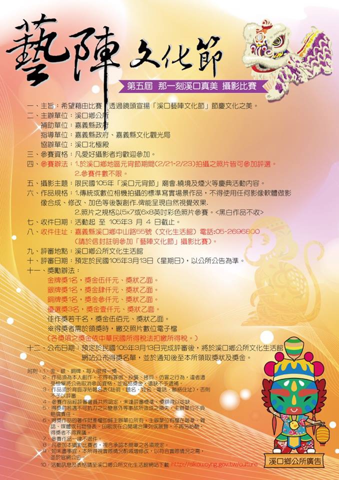 藝陣文化節 第五屆攝影比賽,2/21-2/23