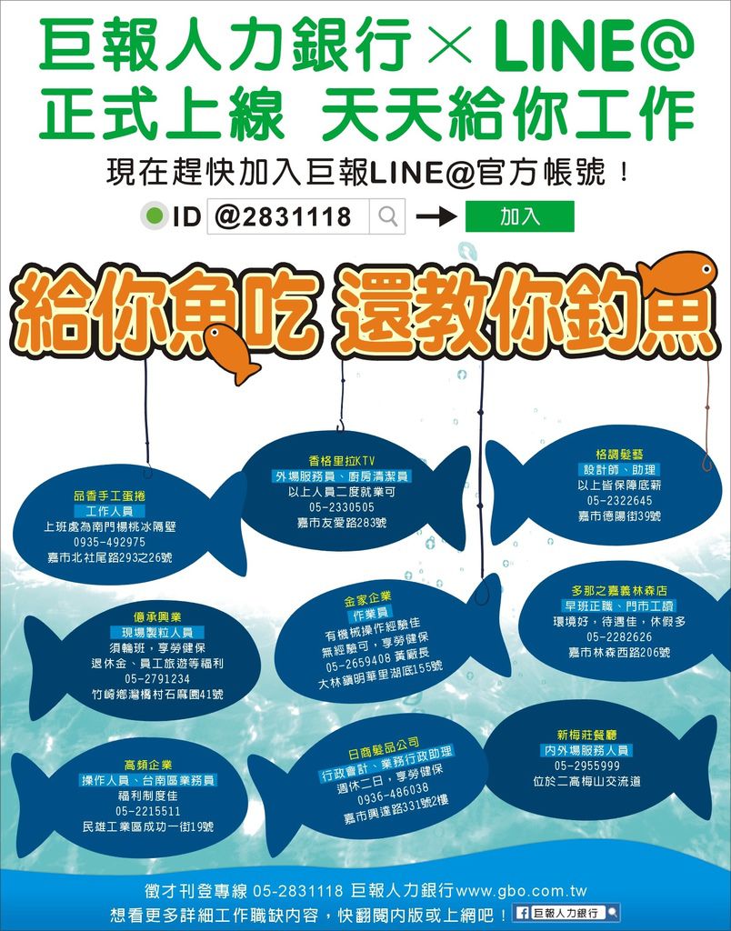 巨報人力銀行LINE@正式上線 給你魚吃,還教你釣魚!