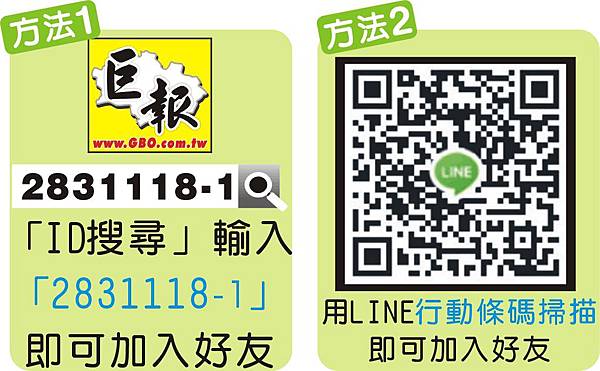 輸入巨報手機LineID碼2831118-1→成為巨報Line友