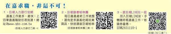 加入巨報LINE友,手機隨時看嘉義工作、省錢券優惠。ID碼2831118-1