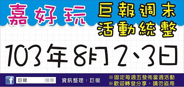 嘉好玩! 巨報週末活動統整(8/2、8/3)