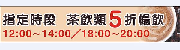 內容:只要在指定時段內(12:00-14:00、18:00-20:00)來購買飲品,茶飲類享5折暢飲優惠