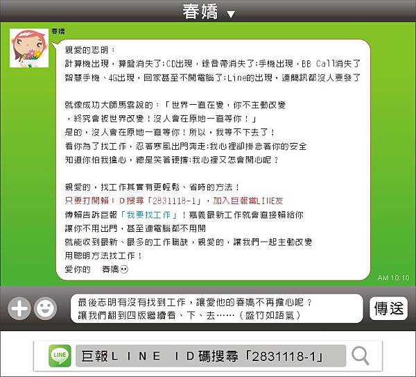 只要打開賴搜尋「2831118-1」,加入巨報當LINE友