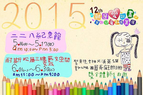 內容:展出天主教會附設景仁幼兒園兒童畫作約200幅,每件作品都有著孩子們天馬行空的創作,歡迎民眾前來參觀