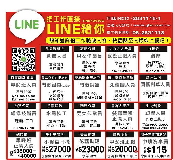 ★按讚加入「巨報人力銀行」臉書,嘉義職缺報哩知: