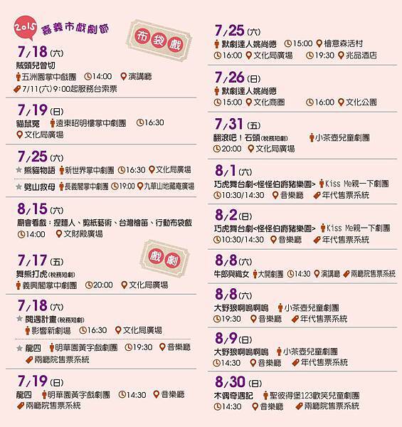 時間:104年7月17日(五)至8月30日(日)陸續舉辦