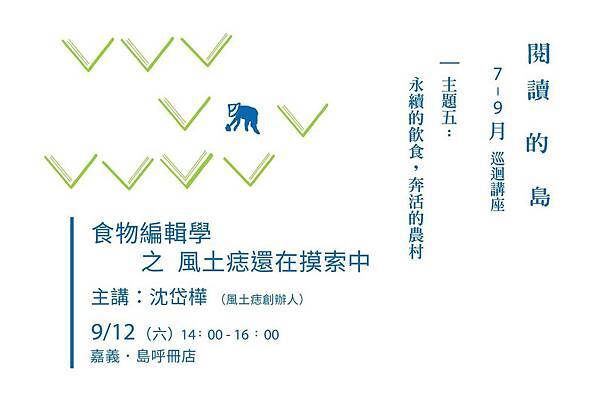 內容:《風土痣》創辦人沈岱樺主講,講題為「食物編輯學之風土痣還在摸索中」,期許透過刊物發行,讓我們多關心日常生活的人事物