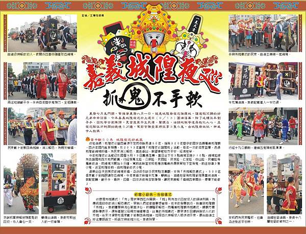 農曆七月鬼門關,緊接著農曆八月一日,就是城隍爺夜巡諸羅城,讓逾假不歸的好兄弟乖乖回家。今年嘉義城隍夜巡於上週日(9/13)圓滿落幕,除了延續往年劊子手、囚犯等古裝陣頭,更首度展示生死簿、孽鏡台、油鍋地獄等道具教化人心,且夜巡隊伍才剛開始繞境5分鐘,駕前吉勝堂家將捉拿3隻小鬼,由城隍爺收伏,神威令人敬佩。