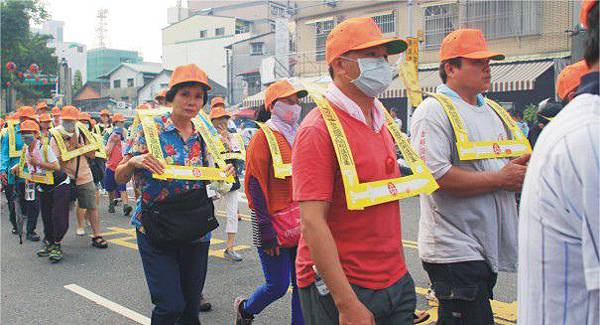 ↑ 參與夯枷儀式的民眾,由道士帶領一起繞境。