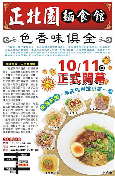 「給顧客平價選擇中的最高享受」,正北園麵食館用心烹煮每一道麵食,無論是湯麵、乾麵、牛肉麵、牛湯麵、榨醬麵等,食材堅持親自到市場採買,注重食材鮮度、每日定量供應,細心掌控店內料理品質。而Q彈手工麵條,與新鮮食材相輔相成,加上使用有機土雞蛋自製的溏心蛋,讓看似簡單的麵食,飄散著色香味俱全的好滋味。