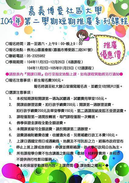 ●博愛社大第二學期短期推廣課程