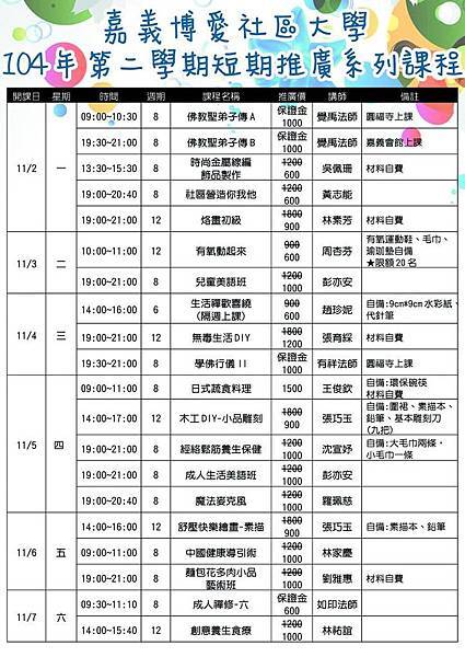 時間:報名中,104年11月2日(一)起陸續開課