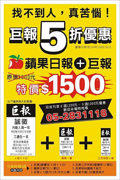 ★嘉義工作最多、最快,請上巨報人力銀行: