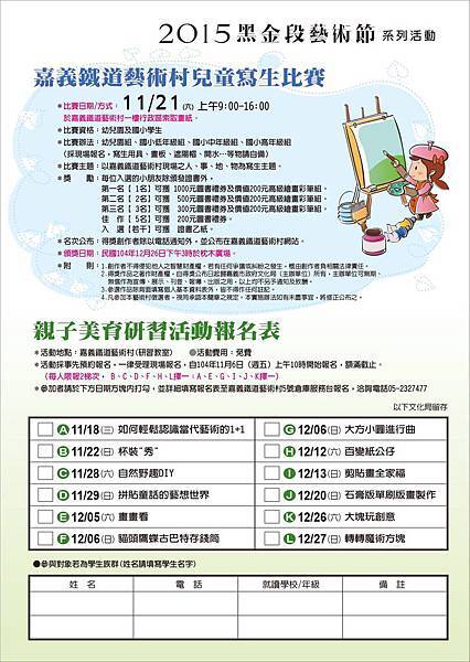 備註:親子美育研習共12場DIY活動,11/6起開放報名,黑金段藝術節系列活動詳閱 http://ppt.cc/RiPOC