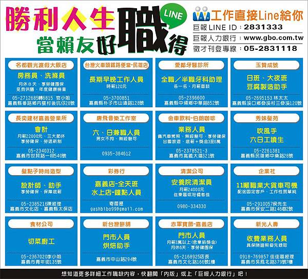 ★嘉義工作最多、最快,請上巨報人力銀行: