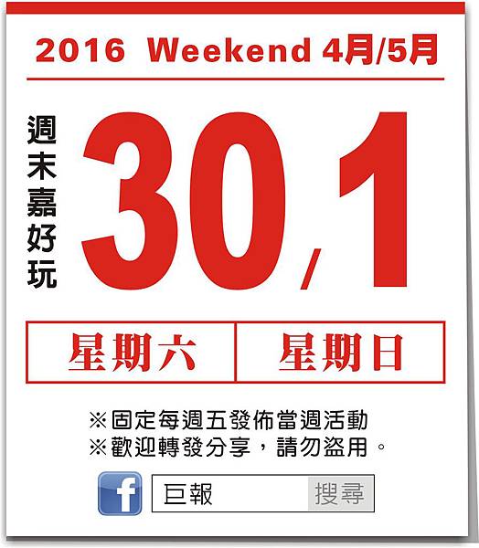 嘉好玩! 巨報週末活動統整(4/30、5/1)