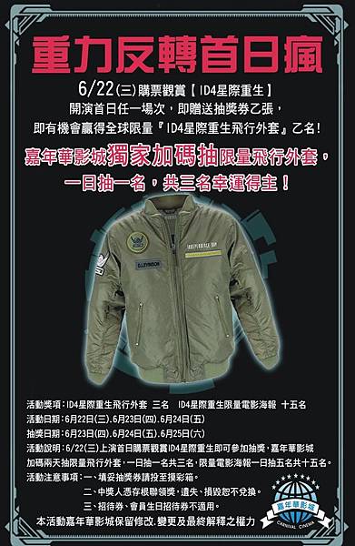 嘉年華影城:重力反轉首日瘋 抽限量飛行外套