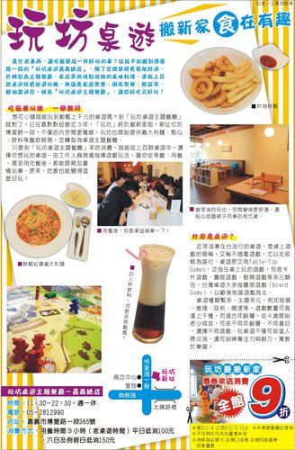 想花小錢就能玩到動輒上千元的桌遊嗎?到「玩坊桌遊主題餐廳」就對了!已在嘉默默經營近3年,「玩坊」終於搬新家啦!新址位於博愛路一段,不僅店內空間更寬敞,玩坊也開始提供義大利麵、點心、飲料等餐飲服務,並轉型為桌遊主題餐廳。