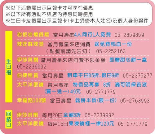 ★更多巨報卡即時優惠訊息,歡迎按讚加入「終身巨報卡」臉書: