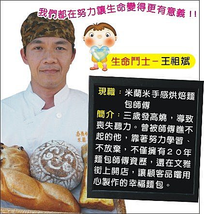 簡介:三歲發高燒,導致喪失聽力。曾被師傅瞧不起的他,靠著努力學習、不放棄,不僅擁有20年麵包師傅資歷,還在文雅街上開店,讓顧客品嚐用心製作的幸福麵包。