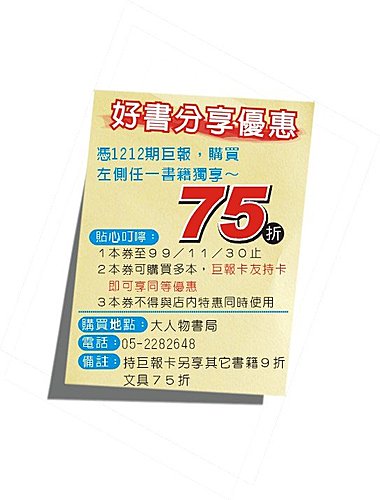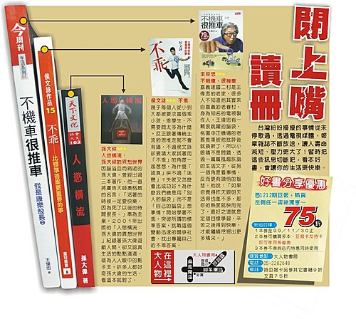 憑1212期巨報報紙,至大人物書局購買上述任一書籍獨享75折