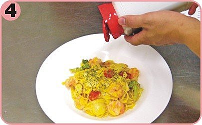 【南瓜鮮蝦義大利麵】簡易指數:3顆星