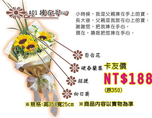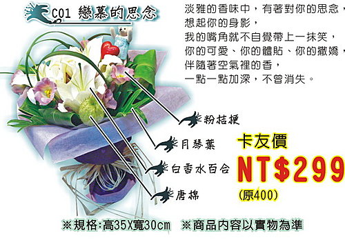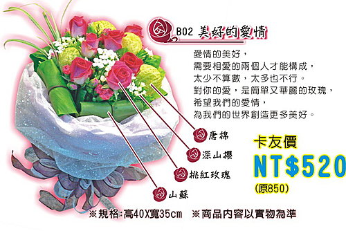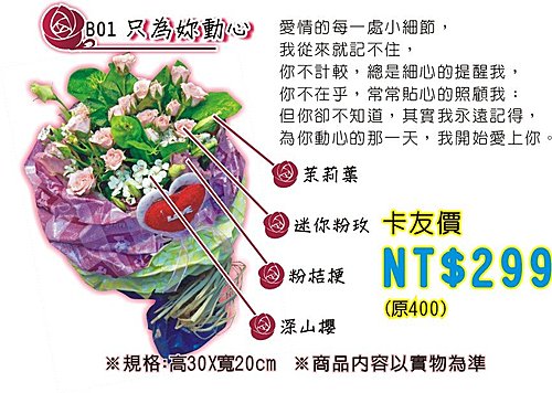 更多情人節、父親節花束,請上巨報網-卡友特區:www.GBO.com.tw
