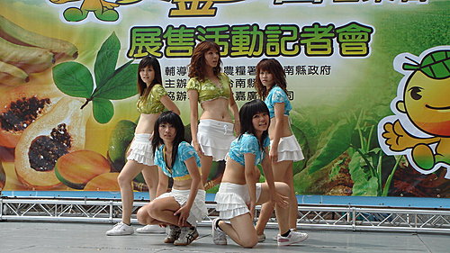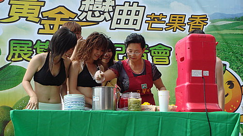 由台南縣農會所主辦的「黃金戀曲芒果香」記者會,20日(五)下午兩點在嘉義市耐斯松屋廣場舉行,由雲嘉電台台長翁愷莉主持。現場不但有辣妹的熱舞表演,還由玉井鄉的芒果達人連美月小姐現場製作消暑的芒果冰,提供給媒體朋友與民眾品嚐。