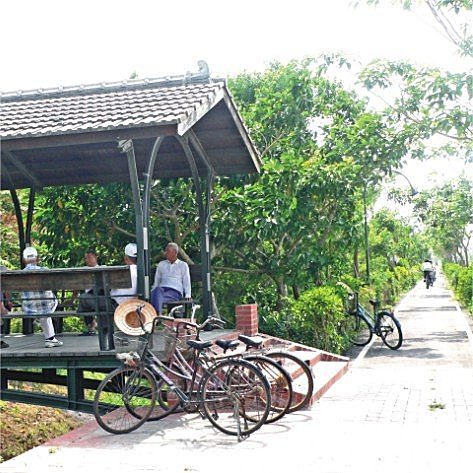 蒜鰲田園自行車道全長共6‧1公里,這條自行車道對全家大小相當適合,除了因為它經過的所有路段都很安全外,自行車道兩旁樹蔭林立,很多怕太熱的爸爸媽媽,來到這裡都不用擔心小朋友被曬成小黑炭!而且沿路上都不時有涼亭穿插其中,如果體力不是這麼好,或是抱著踏青的心情到此一遊,也可以來這裡野餐過個悠閒的一天喔!