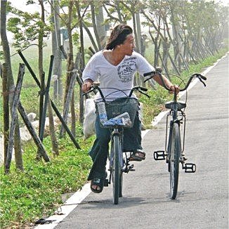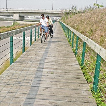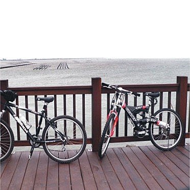 全部都是木板組成的自行車道沒看過吧!幾台自行車一路「科隆科隆!科隆科隆!」的抖過來,感覺好像把身上肥肉抖掉了幾斤有(哈哈!)
