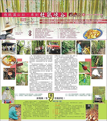 上個禮拜六帶著全巨報的人,一起到奮起湖採筍子,衝著那些滿山遍野的筍子,公司同事瘋了狂的跟著巨報探險隊出遊(也不怕我們會帶他們去什麼鬼地方‧‧‧)結果一路的顛簸,換來的卻是這些城巿鄉巴佬的驚呼:「哇!好刺激喔!」「喔!你們開車技術很厲害咧!」「呼呼!好好玩喔!」怎麼樣也沒想到,這些難得越野一下的土包子們,原來骨子裡也有些冒險精神。