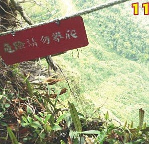 才聊沒一下子,登山遊客一個個往涼頂上來,頓時間,涼亭就像個熱鬧的菜巿場,大朋友小朋友都來到這裡欣賞風景,一向不愛人擠人的巨報探險隊,也在這時候決定前往下一個行程。往山下走去,一路是走在山陵線上,一邊就是萬丈深淵的大峽谷,由下望去,雖然今天是無緣看到滿山紅的杜鵑,但卻也慢慢能體會出這個杜鵑峽谷地形,是如何吸引著眾多登山遊客的拜訪。