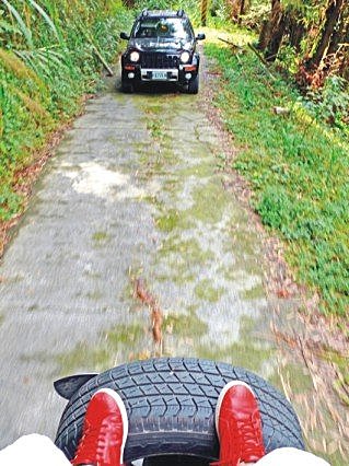 01:阿福冒險爬上行徑中車頂拍照,小朋友不能學喔!