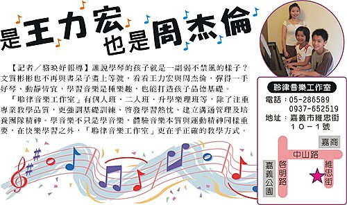 【記者/駱映妤報導】誰說學琴的孩子就是一副弱不禁風的樣子?文質彬彬也不再與書呆子畫上等號,看看王力宏與周杰倫,彈得一手好琴、動靜皆宜,學習音樂是種樂趣,也能打造孩子品德基礎。