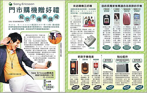 親切有活力的笑容、年輕又活潑,以及簡單明亮的裝潢,是走進Sony Ericsson的第一印象,各式各樣的手機排列整齊,多樣齊全的配件,讓你可以輕易為你的寶貝手機添購新配件。不同於一般傳統通訊行,Sony Ericsson興業門市不只提供舒適、整潔的空間,也為了服務消費者,配合手機的強大功能,在門市提供豐富的網路資源服務,讓消費者可以下載圖片與鈴聲。想選購新機嗎?到Sony Ericsson興業門市準沒錯!且為了配合門市新開幕,目前到門市購買手機即贈送多樣好禮哦!