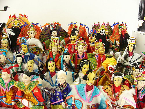 圖3:萬象館裡展示許多布袋戲偶,也有販售相關的紀念品,如T恤、手帕、明信片、書籍、筆記本...等等,還有ㄧ個地方可以換上布袋戲服拍照留念喔!
