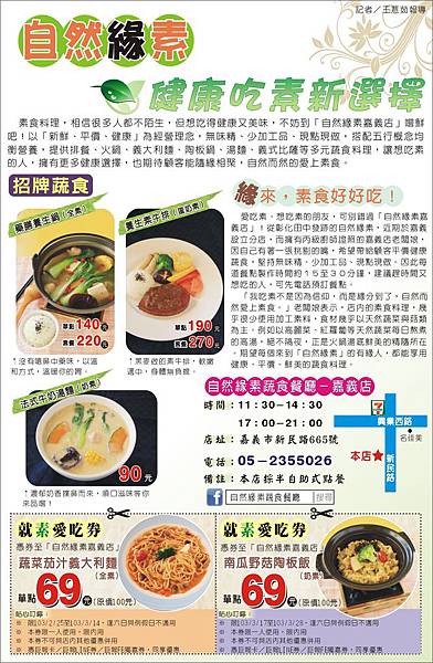 備註:本店採半自助式點餐,FB請搜尋「自然緣素蔬食餐廳」
